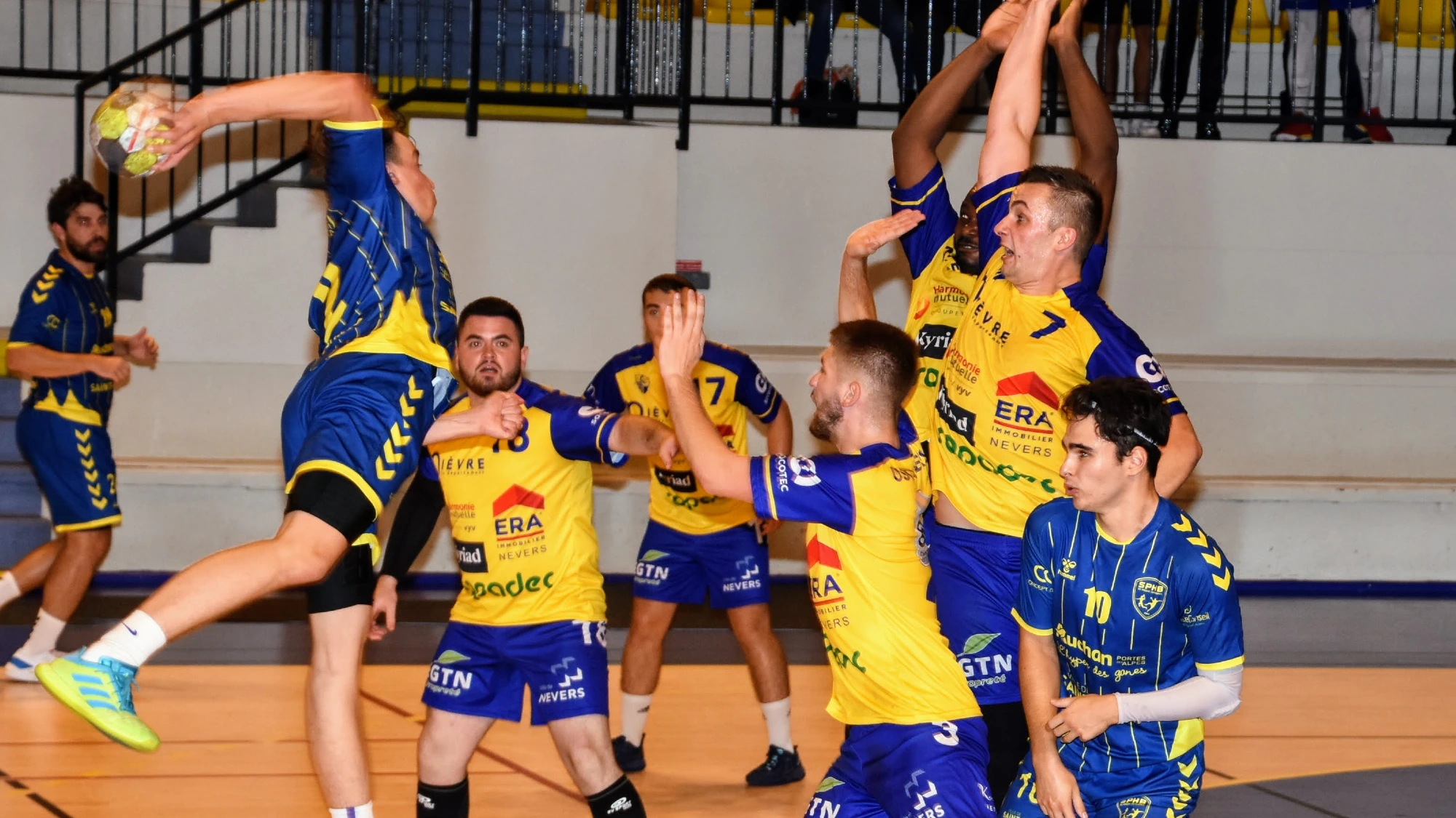 pour accompagner les jaunes et bleus dans leur incroyable entreprise. Dans l’euphorie générale, Nevers recollait au score à l’entrée du money time (27-27), les joueurs de Saint- Priest n’en croyaient pas leurs yeux.