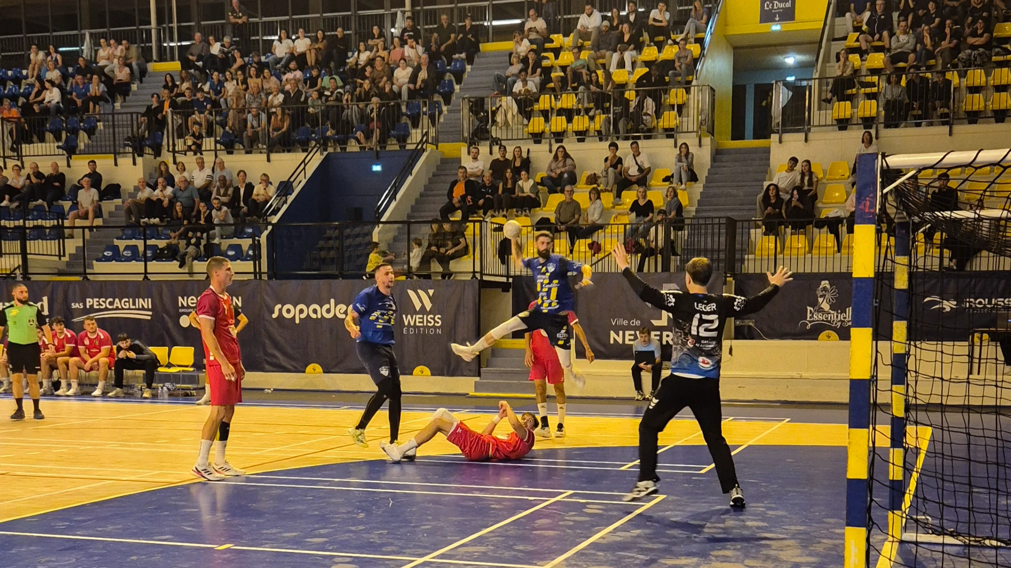 Nos nationaux méritaient sans doute une défaite moins lourde, samedi soir sur leur parquet de la Maison des Sports (33-40). Peu importe l’ampleur du score puisque seul le résultat compte mais quand même… Le tableau d’affichage fait presque oublier la remontée de nos jaunes et bleus à un but à 10 minutes de la fin. Preuve s’il en est que l’équipe à de la ressource après avoir couru après le score toute la partie.